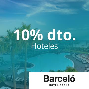 Disfruta de un 10% de descuento en los hoteles del Grupo Barceló, con más de 300 establecimientos en todo el mundo.